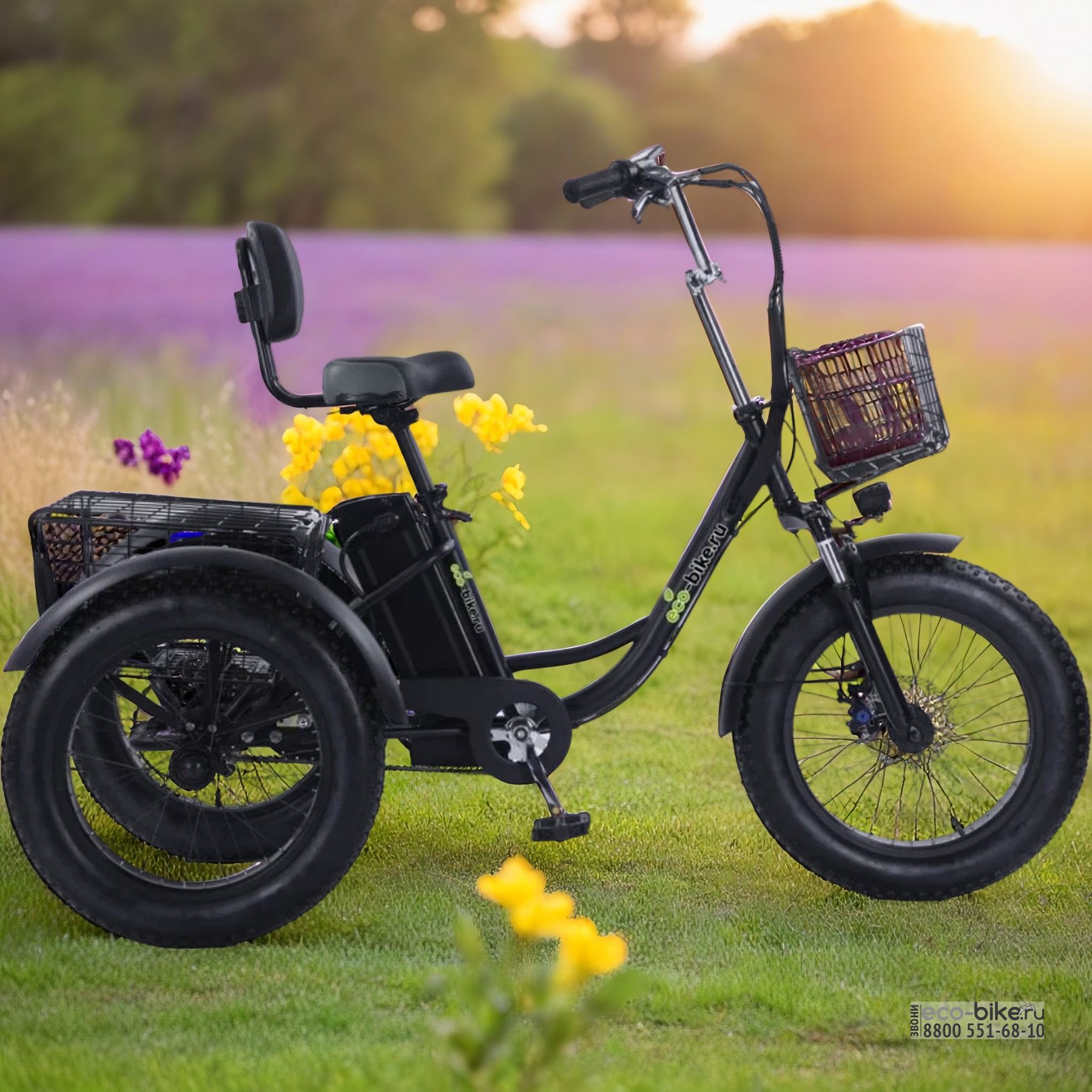 Трехколесный электровелосипед Fat Trike T NEW с передней корзиной